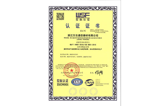 浙江万吉通信器材有限公司成立于2000年8月份,现公司生产基地坐落于富阳市东洲工业功能区、杭千高速公路东洲出口处,交通十分便利,公司占地面积25亩。高学历技术人员及管理人员近20名,公司引进国内领先水平的全电脑控制塑料挤出生产线,高精度模具等。