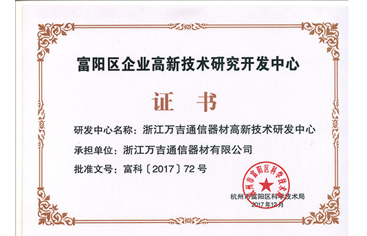 我公司先后获得国家级高新技术企业、浙江省科技型中小企业、杭州市级研发中心、杭州富阳区研发中心、杭州富阳区“守合同重信用”单位等荣誉称号。